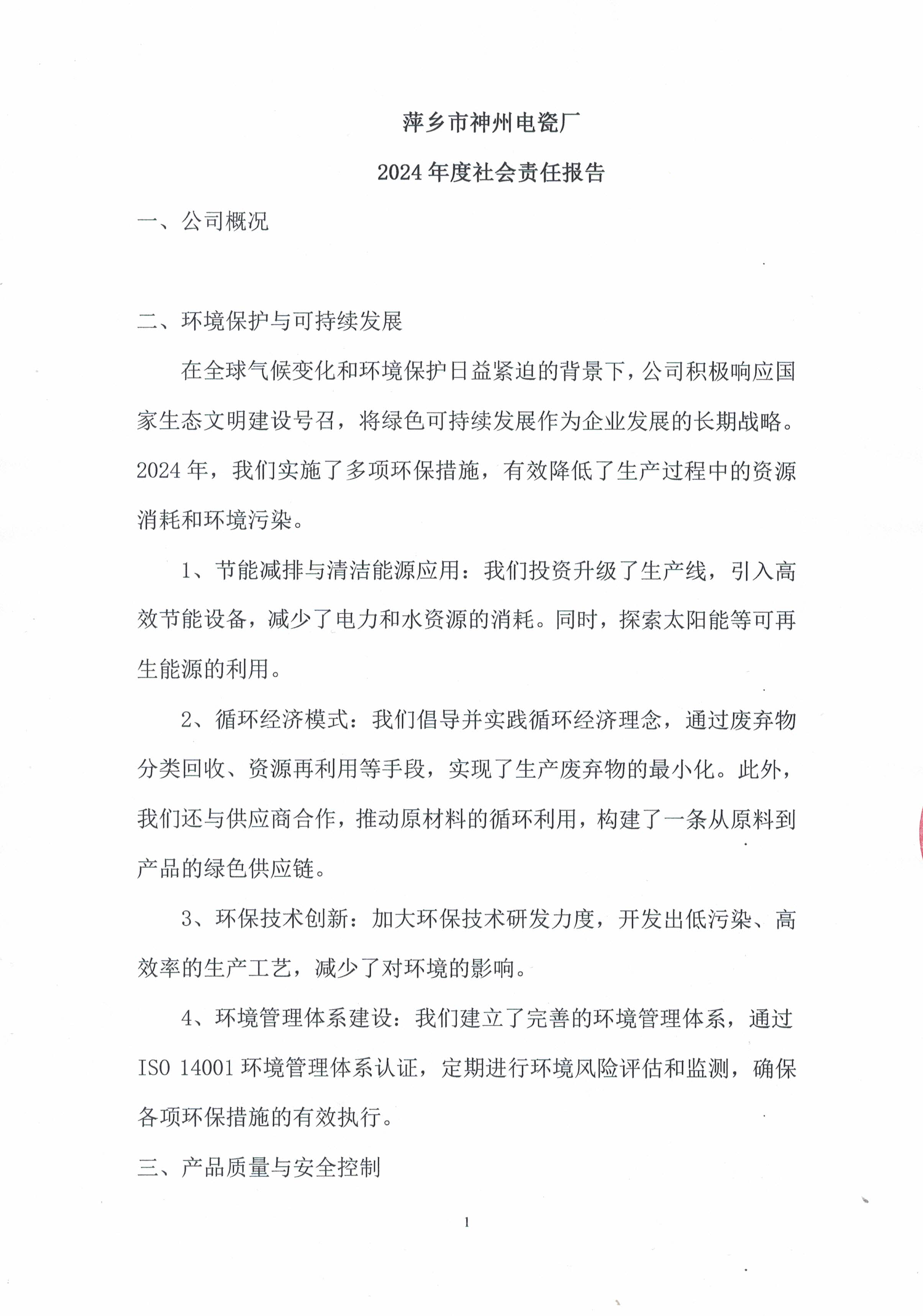 【公示】萍乡市神州电瓷厂2024年度社会责任报告