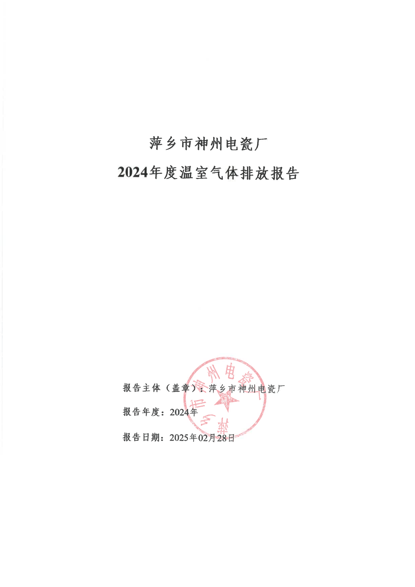 【公示】萍乡市神州电瓷厂2024年度温室气体排放报告